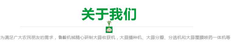 为满足广大农民朋友的需求,鲁毅机械精心研制大蒜收获机,大蒜播种机、大蒜分瓣、分选机和大蒜覆膜喷药一体机等适合农业的多种农机具,操作简单,种植、收获速度快,提高了农作物种植收获的效率,受到客户的一致好评。